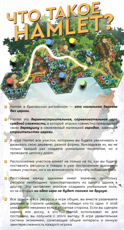 В этой соревновательной деревне - строительной игре средней сложности игроки совместно строят деревню, чтобы она разрослась и стала городком. Кто внесет самый значительный вклад в общее дело, вам предстоит узнать в ходе игры.